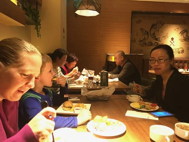 Our friends in Holland who also happen to be Ben’s teacher has friends in Beijing who were kind and patient enough to take three jet lagged visitors to dinner. I was prepared for something of a mix between Chinese and Western food, but instead we got Sizzler. Truth be told itwas a welcome relief after airplane checkin. It also gave us a quick lay of the land in case we needed to escape the confines of our hotel later in the trip.