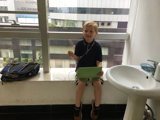 After the doctor's appointment I ventured out for bread and other items so we can make our gourmet meals in the hotel room. Nothing beats a "free" sandwich for the week at a price that beats a single bottle of Evian here in the hotel room. I managed to navigate an underground train entrance, an overpass, and I even paid with awkward change just to confuse the nice teller at the store. Somehow I thought an extra 2 RMB would make a difference. It didn't. Having finished our lunch Ben and I wandered the grounds and then met with Sir Richard who put our papers together for the consulate meeting on Tuesday. Following that we went for a family swim in the freezing pool and pouring rain that will be a good story someday I'm sure. Here's a hint: we ended up wet.